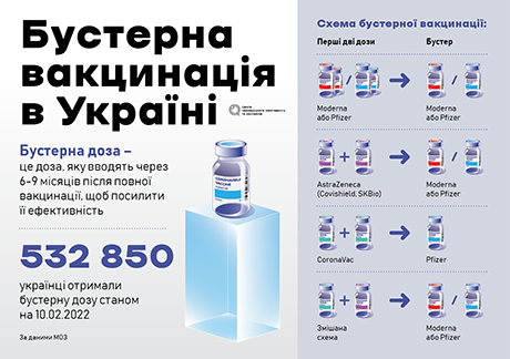 Наприкінці 2021 року Європейське бюро Всесвітньої організації охорони здоров’я (ВООЗ) закликало країни розпочати повномасштабну бустерну вакцинацію. Тож на початку січня Міністерство охорони здоров’я України дозволило отримати третю дозу всім українцям, які пройшли повний курс вакцинації від коронавірусу. За словами медиків, вона необхідна, щоб продовжити захист організму. Адже через деякий час ефективність введених вакцин слабшає. Бустерну вакцинацію роблять через 6–9 місяців після другої дози.